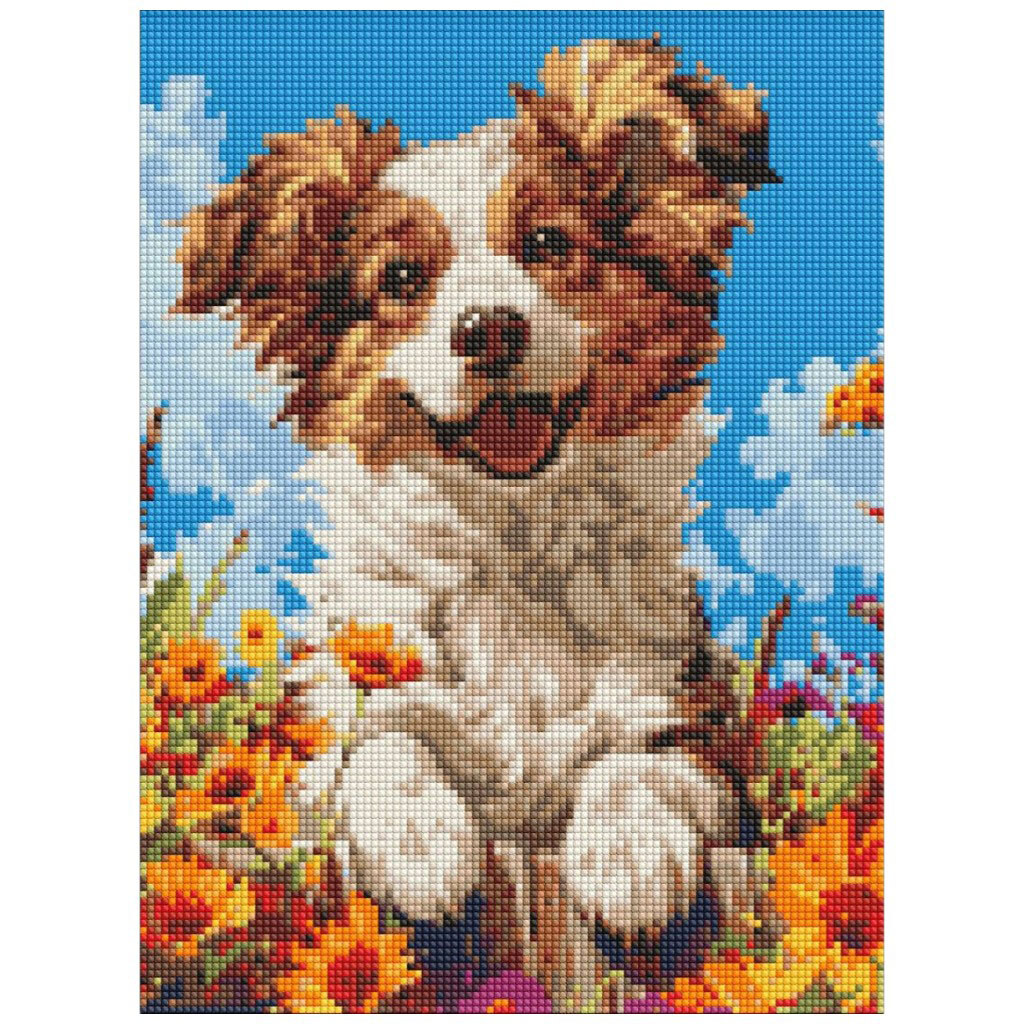 Алмазная мозаика без подрамника "Собака в цветах", 30х40см, Ідейка
