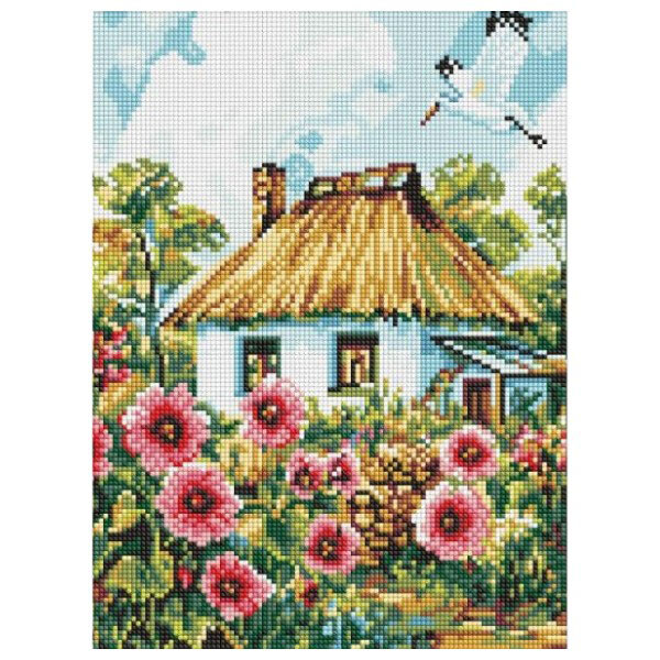 Алмазная мозаика "Мальвы у дома", 30x40см, Ідейка