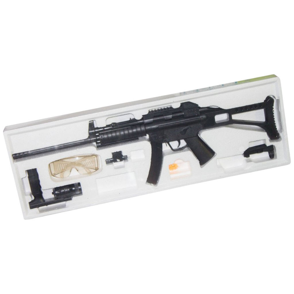 Примечание: Упаковка: Коробка | Тип эл-тов питания: Батарейки (AG13) | Эл-ты питания в комплекте: Есть | Вес в упаковке: 1355 г | Габариты в упаковке: 79 x 7 x 27 см | Габариты без упаковки: 79 x 7 x 27 см | Страна производитель: Китай | Комплектация: Автомат, пульки, фонарик, лазерный прицел