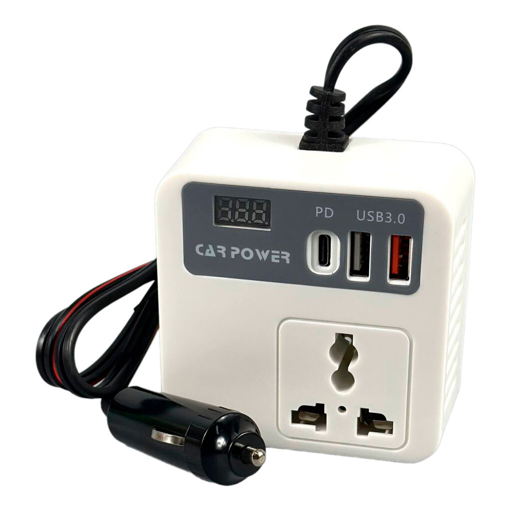 Автомобильный инвертор 12V-220V, Белый
