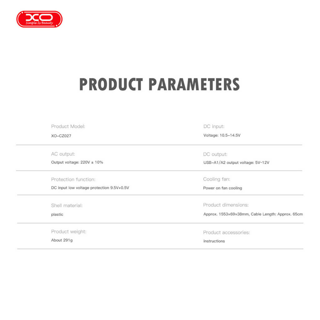 Автомобильный инвертор XO CZ027, Черный