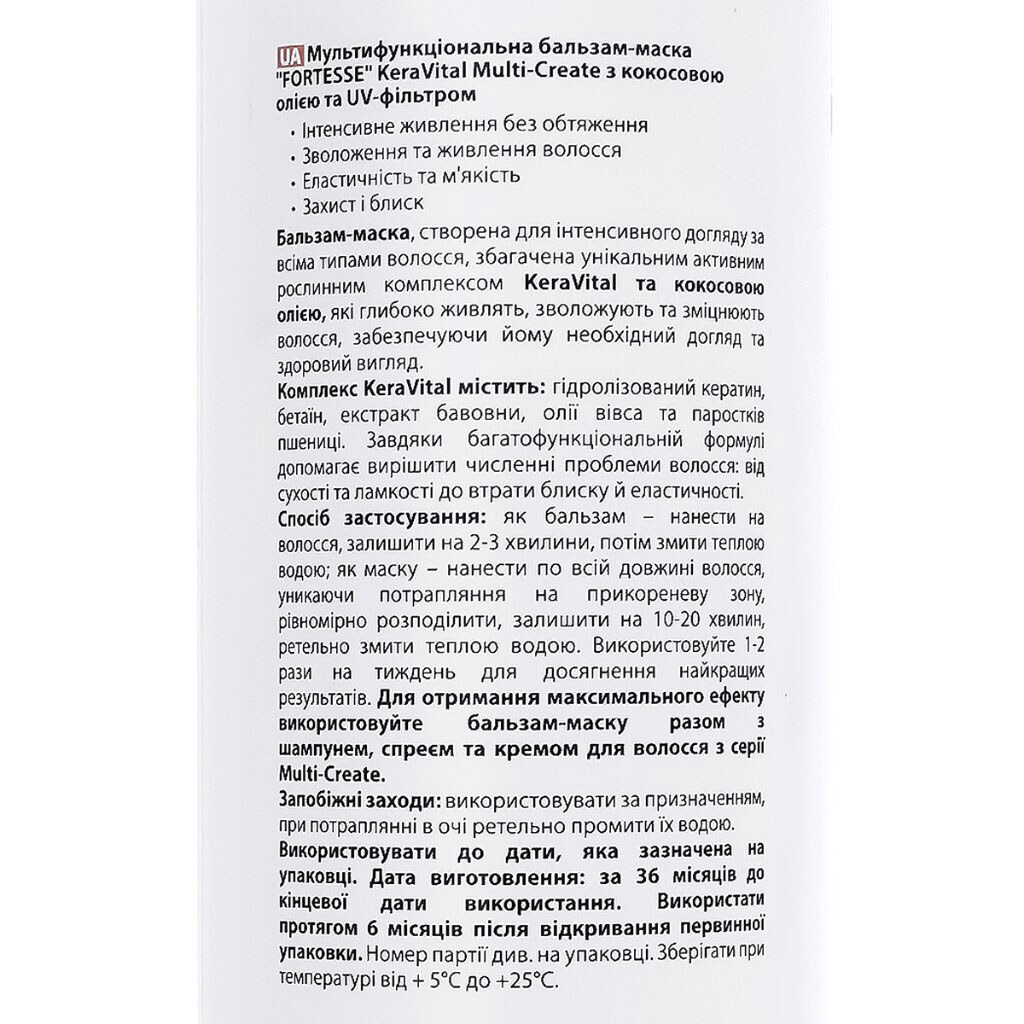 Бальзам-маска для волос FORTESSE KeraVital "Мультифункциональная", с кокосовым маслом, 400 мл