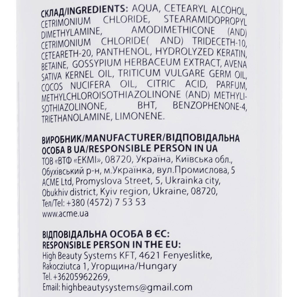 Примечание: Класс косметики: Профессиональная | Комментарий: Ингредиенты: хлопок, бетаин, зародыши пшеницы, кератин, кокос, овес, пантенол | Страна производитель: Украина | Объем: 400 мл | Назначение: Питание | Увлажнение | Тип волос: Для всех типов | Форма выпуска: Флакон с дозатором