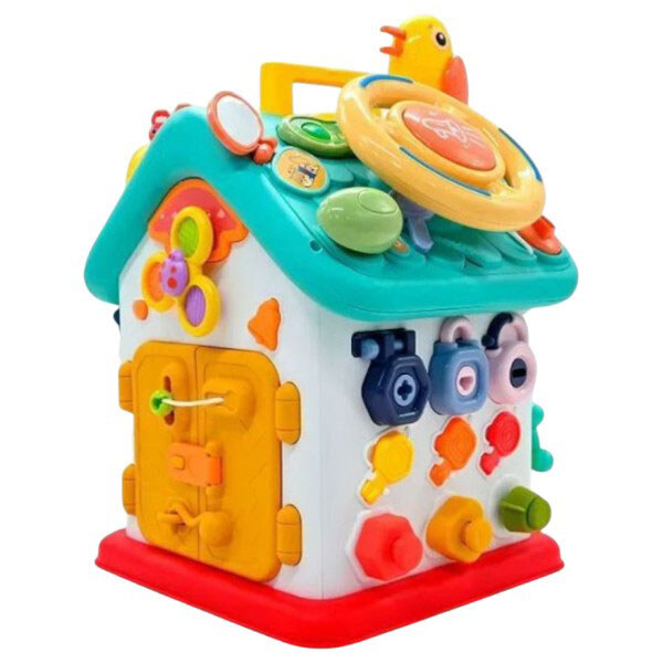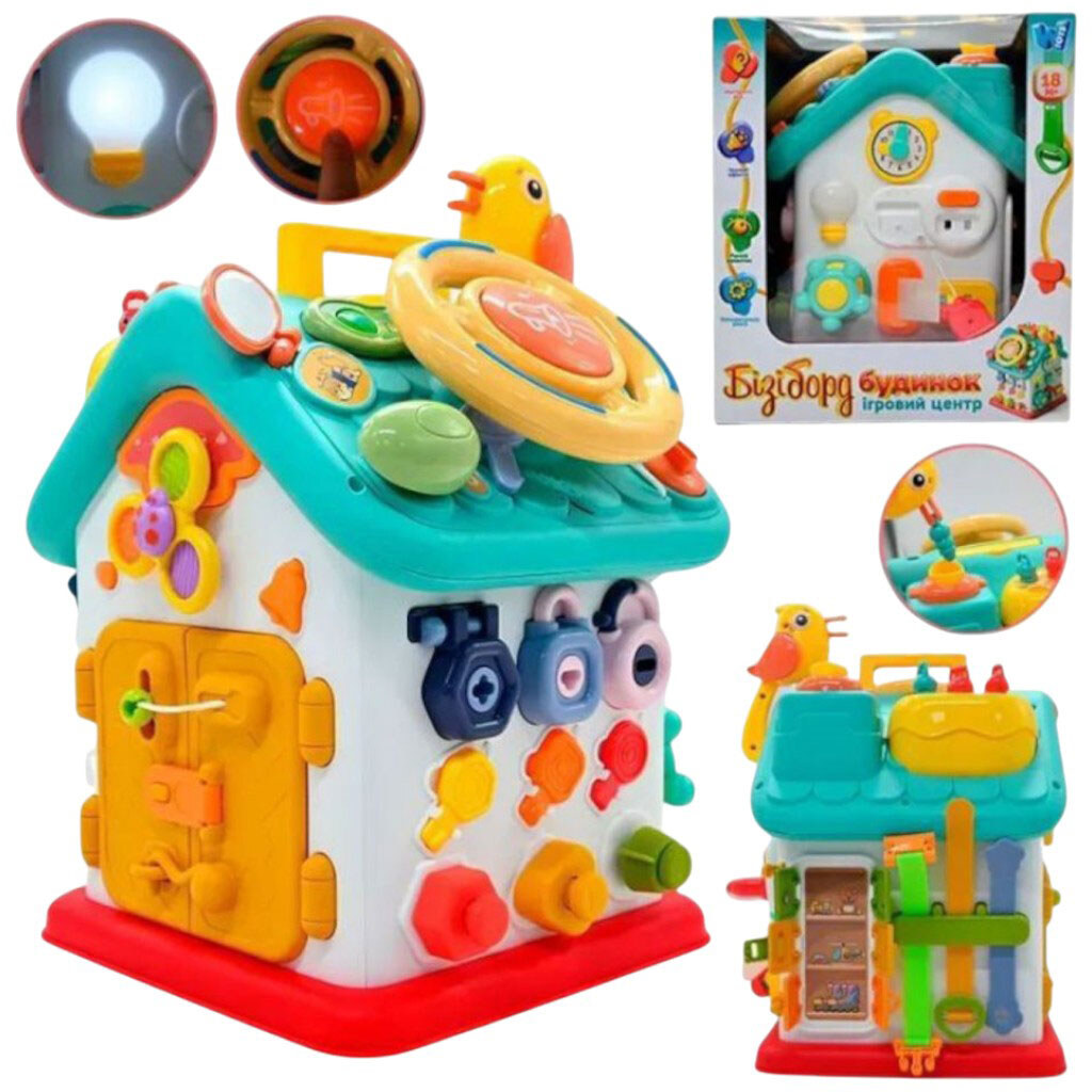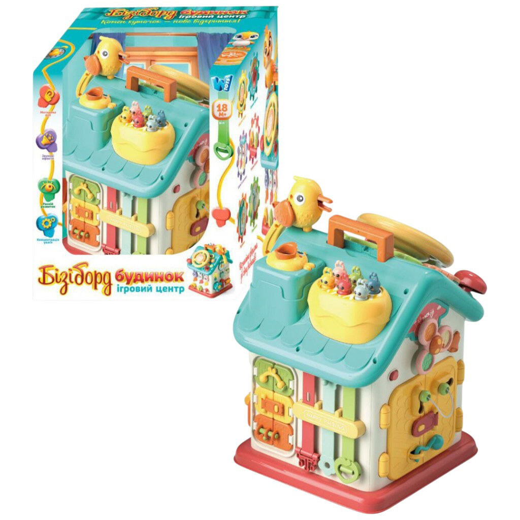 Бизиборд "Дом", укр., 15 сказок, 15 песен, 10 скороговорок, руль, застежки, замки, "Накорми птичку", в коробке, Wtoys