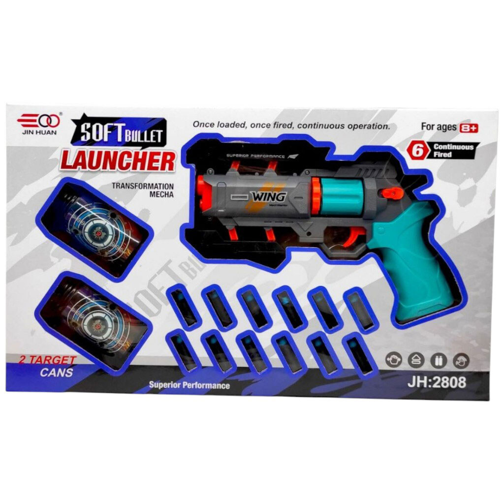 Бластер с мягким. патронами и банками-мишенями, ВИД 2, JIN HUAN
