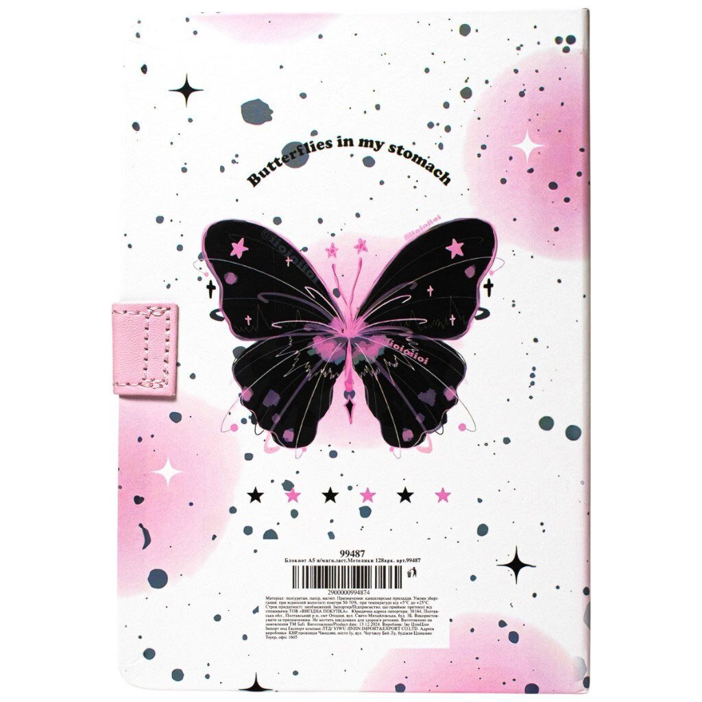 Блокнот А5 на магнитной застежке "Бабочки", 128 листов