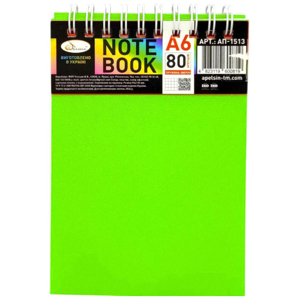 Блокнот А6, 80 л., пластик, пружина сверху, Mic