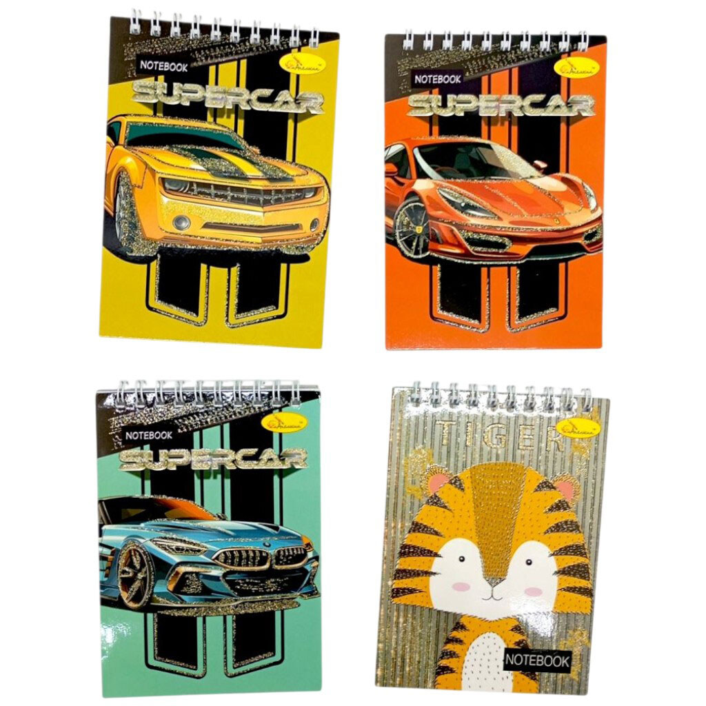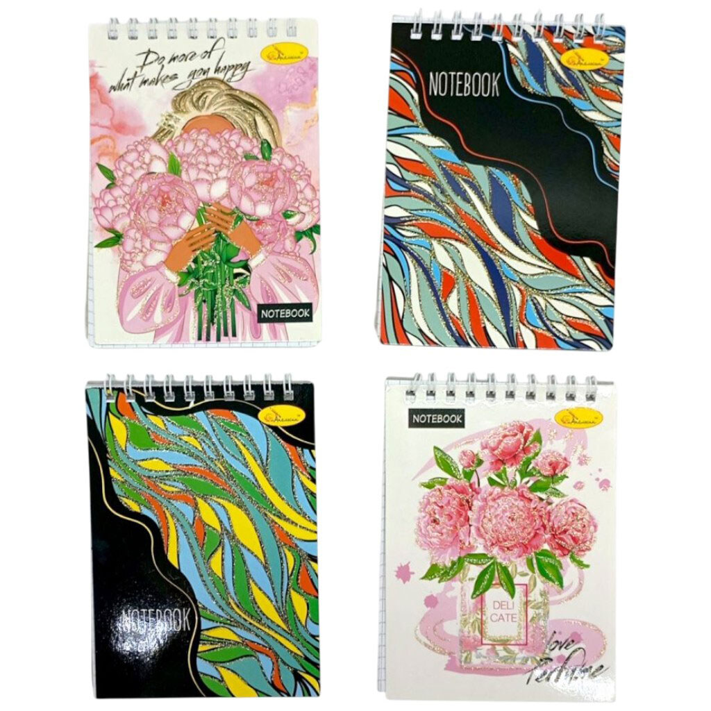 Блокнот с глитером А6, 80 л., пружина сверху, микс видов, Апельсин