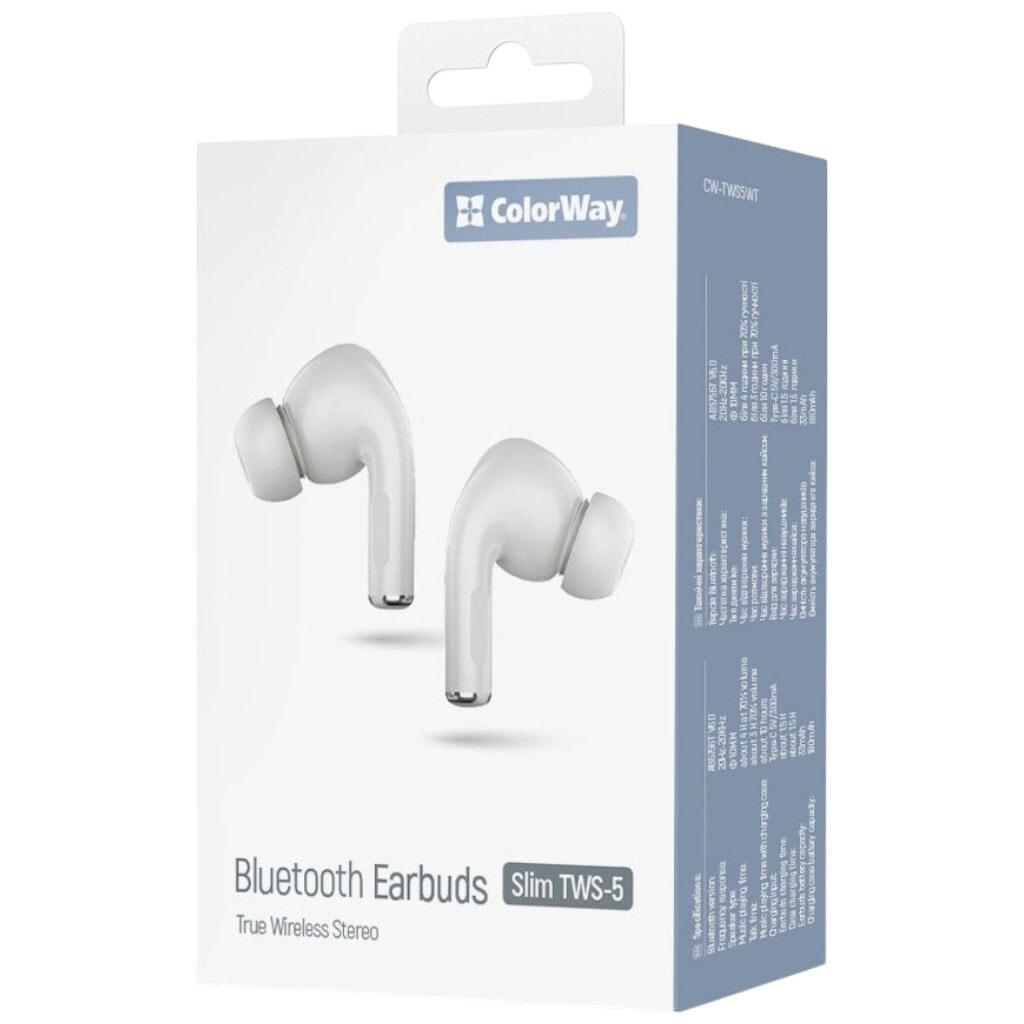 - Купить ₴ Сколько стоит Bluetooth-гарнитура СolorWay Slim TWS-5 Earbuds, С микрофоном, Стерео, Белый?
