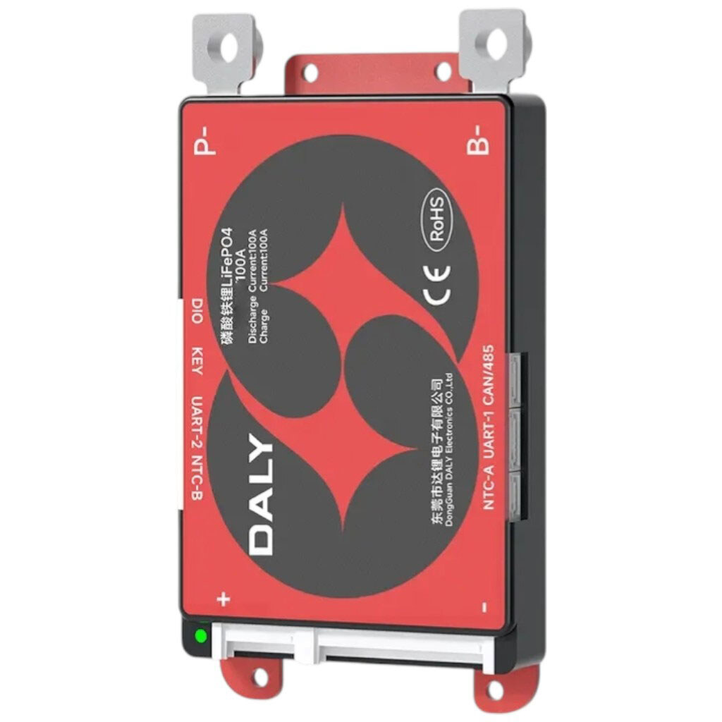 Примечание: Описание: BMS для аккумуляторов LiFePO4 8S, 24V с номинальным током до 100A. Обеспечивает контроль заряда, разряда и пассивную балансировку ячеек. Плата поддерживает интерфейс CAN, оснащенный Bluetooth для мониторинга и настройки параметров через мобильное приложение или ПК. Многоуровневые защиты от перезаряда, глубокого разряда, превышения тока, короткого замыкания, перегрева. Поддерживается пассивная балансировка с током около 100 mA, контроль температуры MOSFET, индикация состояния и журнал событий. Подключение осуществляется через клеммы B- и P-, габариты: 125x65x13мм. | Максимальный ток: 100 A | Количество элементов: 8 | Тип устройства: BMS LiFePo4
