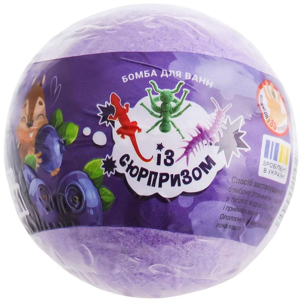 Примечание: Вес: 120 г | Диаметр: 6,5 см | Страна производитель: Украина | Ноты аромата: С ароматом голубики | Внутри бомбочки капсула с фигуркой пресмыкающегося