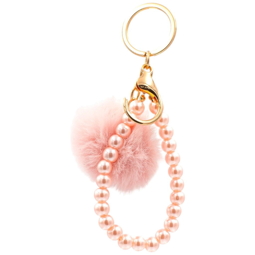 Брелок для ключей с пушистым шариком и бусинами