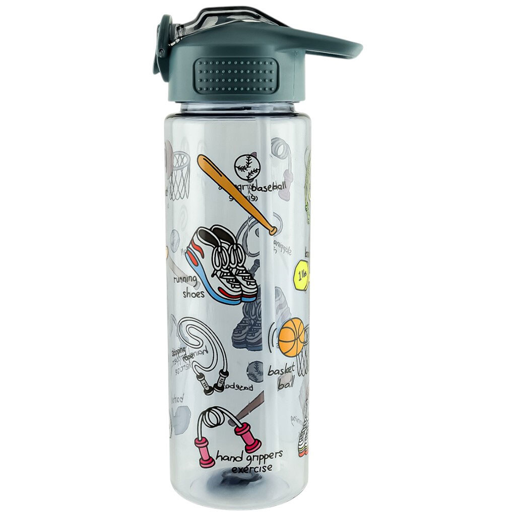 Бутылка для напитков пластиковая с трубочкой детская с принтом 750 мл