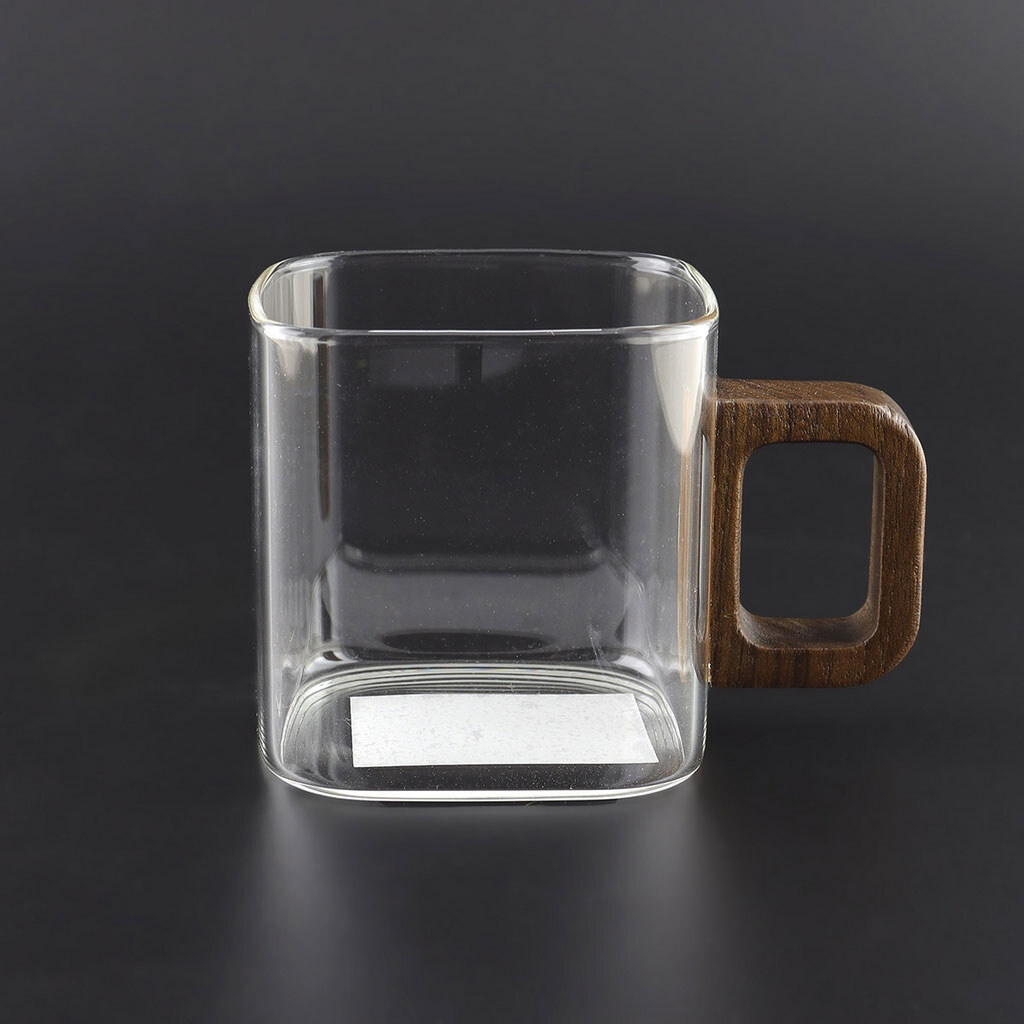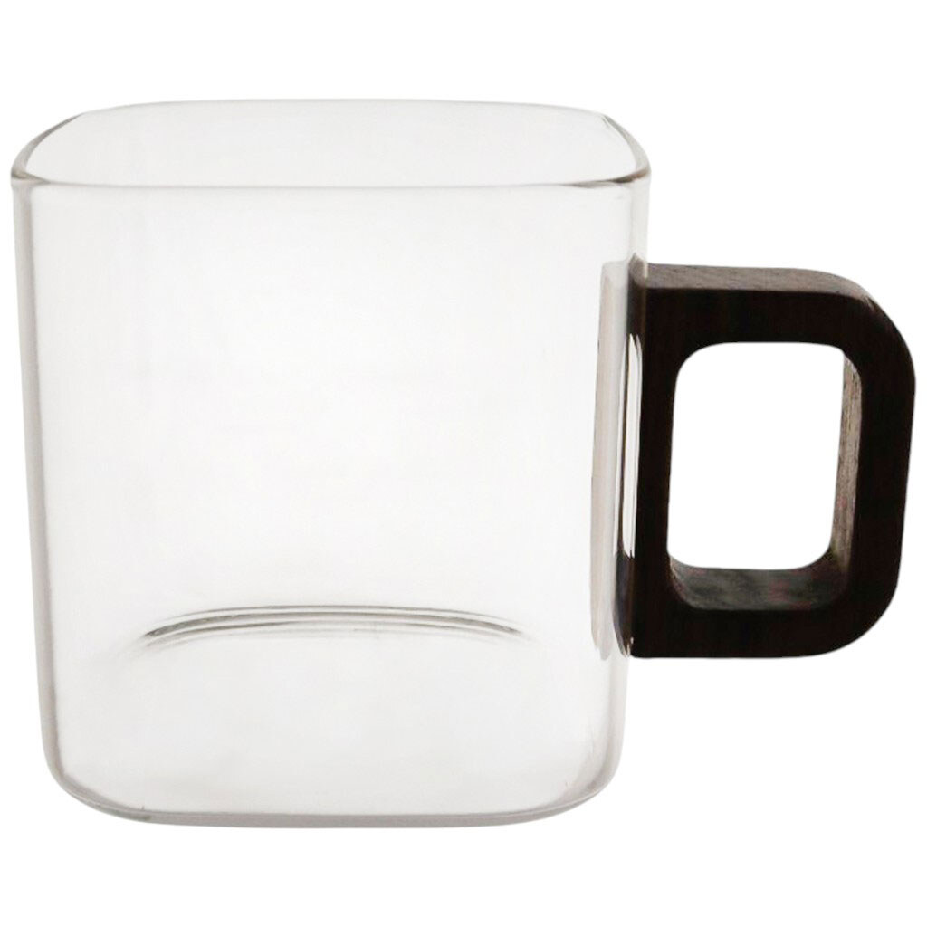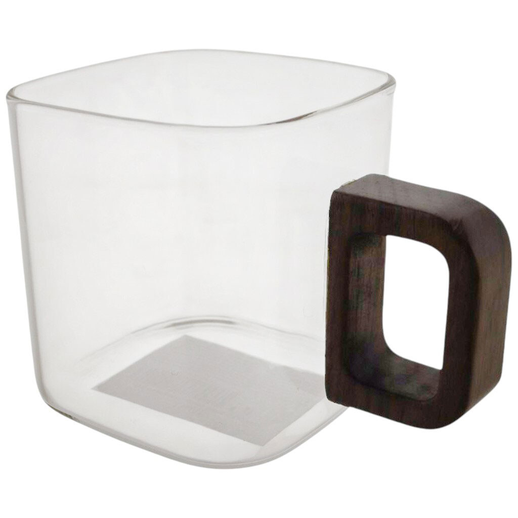 Чашка стеклянная квадратная прозрачная с деревянной ручкой 165 мл