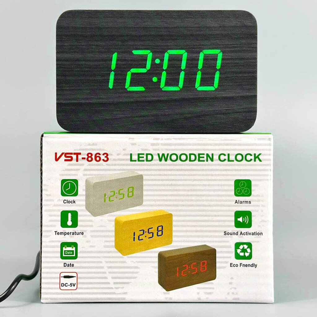 Примечание: зеленая подсветка, дата, температура, будильник, голосовой контроль, DC-5V, 4A