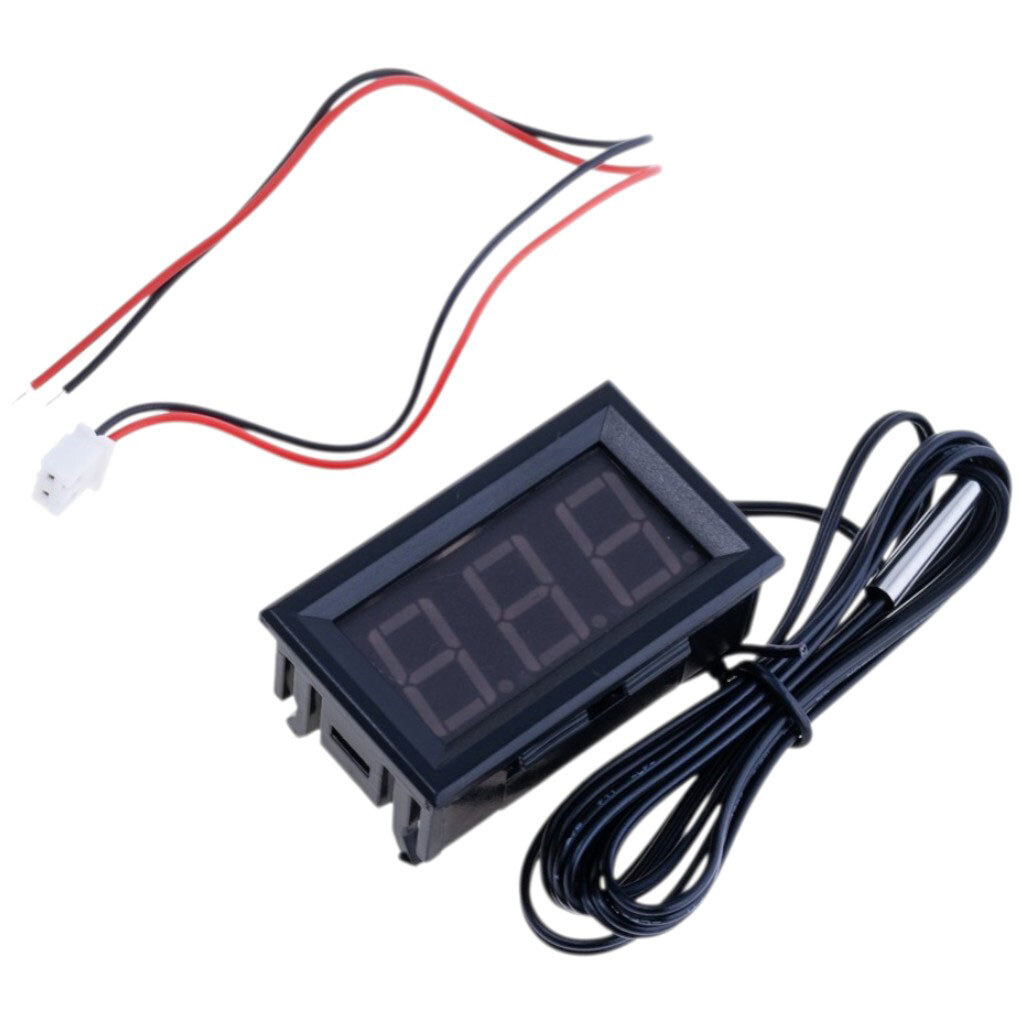 Примечание: Описание: Цифровой термометр с красной индикацией, диапазон температуры: – 55 – 125 °С. Датчик: 10K/B3950. Провод питания: 20см, провод для измерения: 1метр. Питание: 5.. 12 Вольт. Габариты: 48х29х23мм
