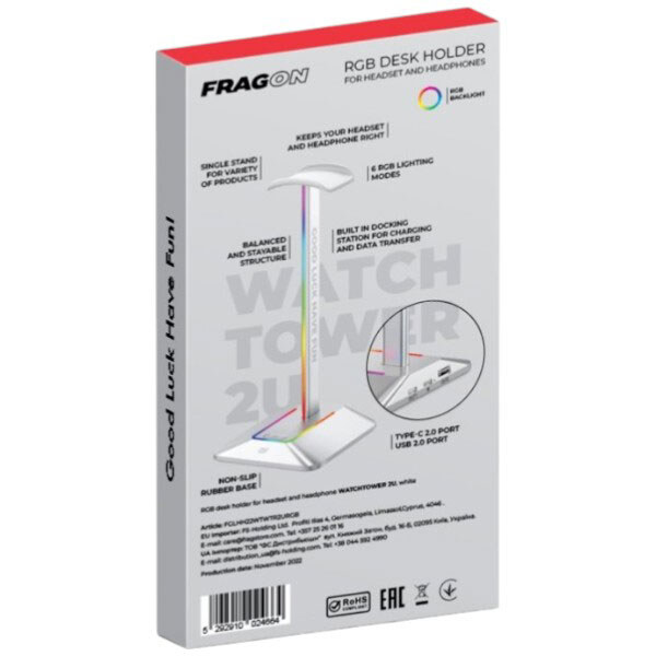 Держатель для наушников FragON Watchtower 2U RGB, Серебряный