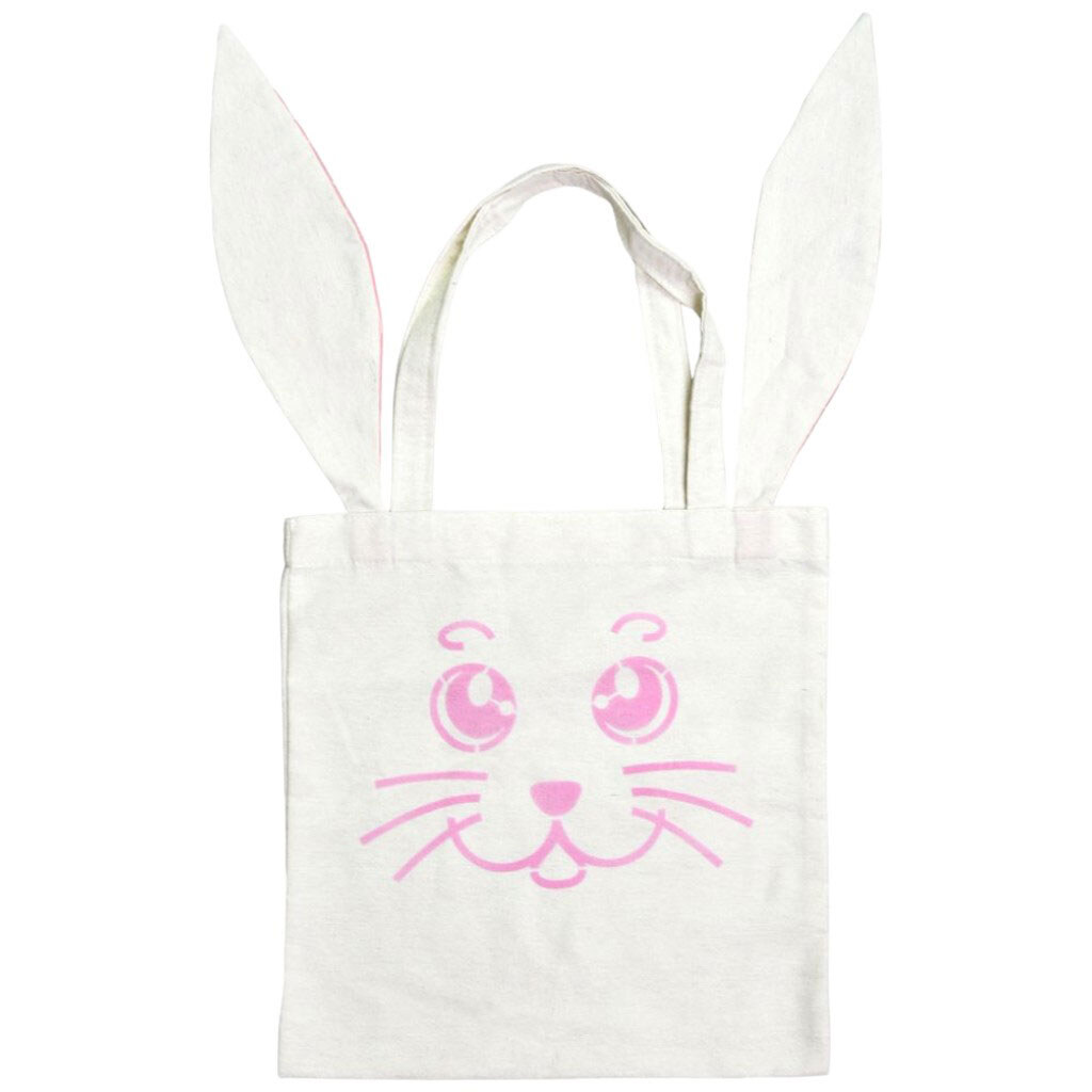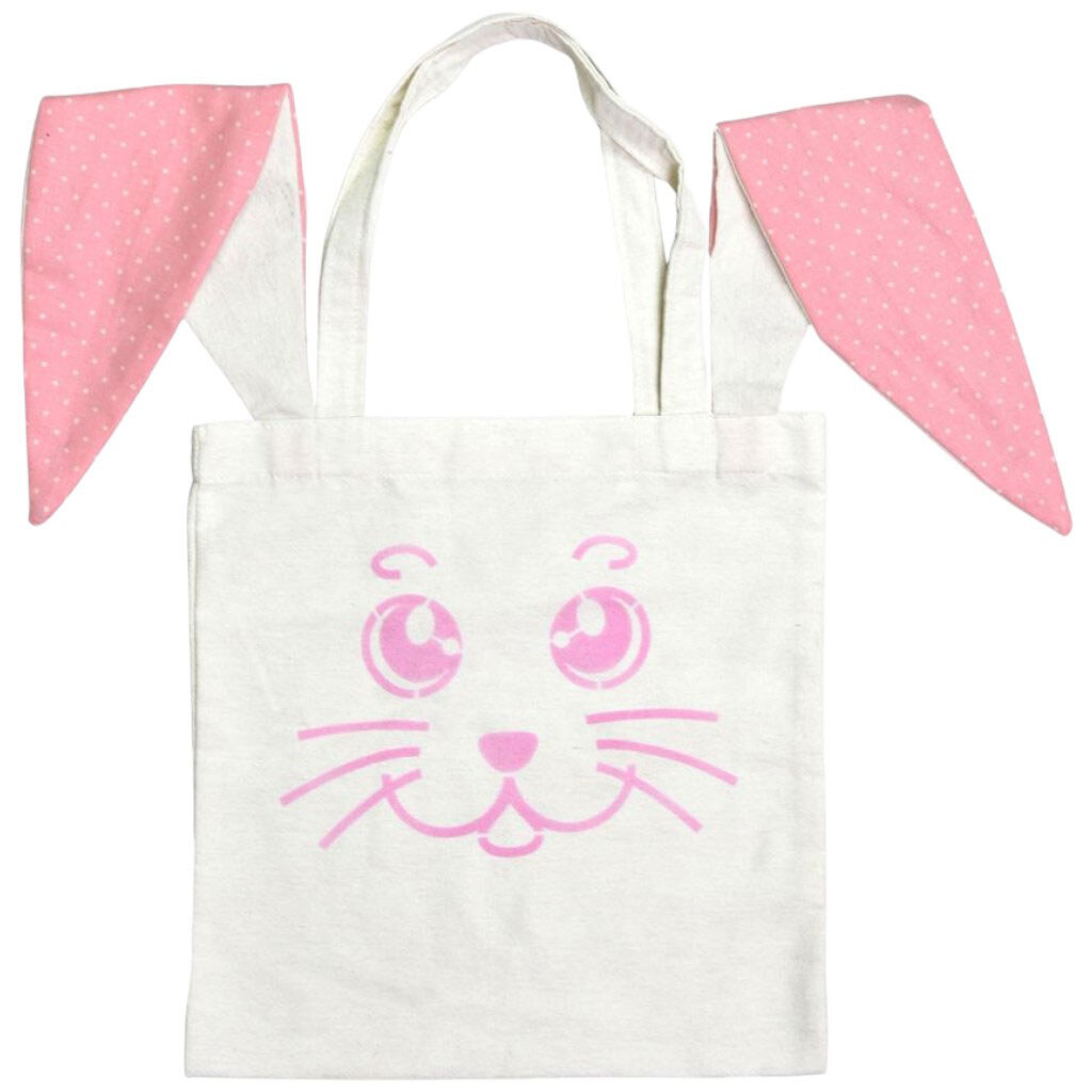 Детская сумка-шопер "Заяц", размер 33x33 см, белая с розовыми ушками, Strateg