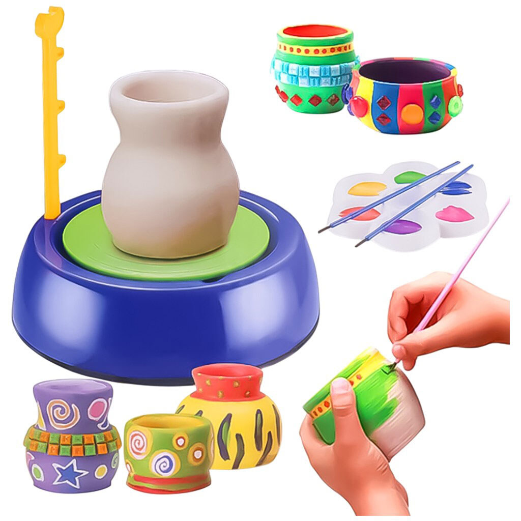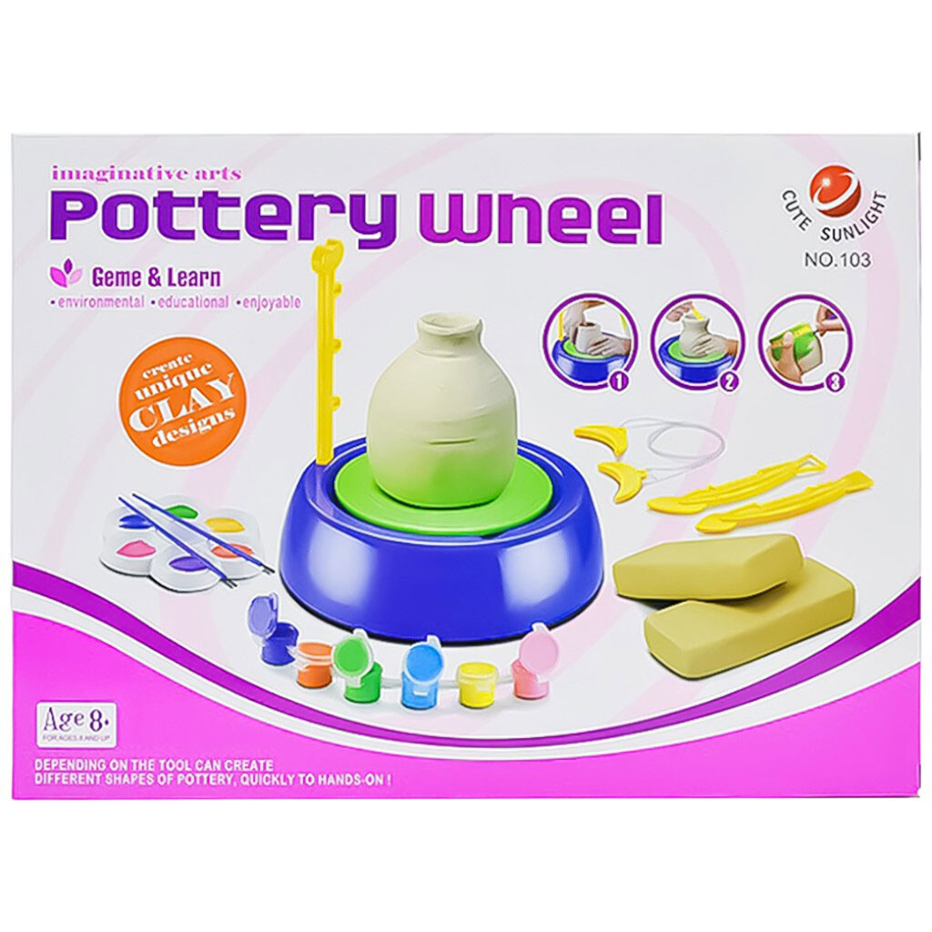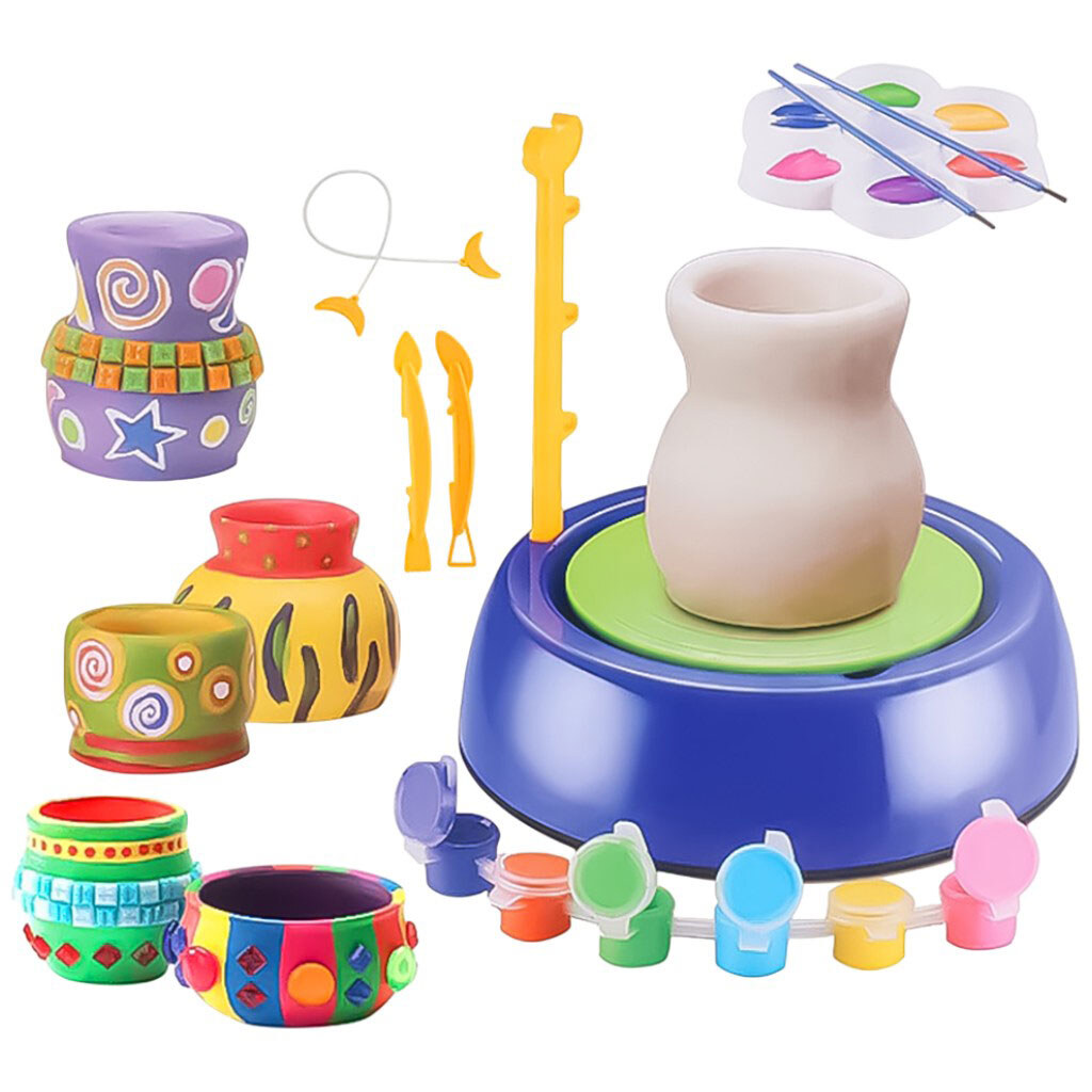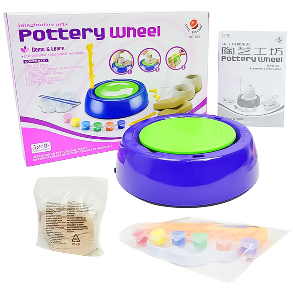 Примечание: Комментарий: Питание от 2 батареек размер D (в комплект не входят) | Комплектация: Гончарный круг, пластина для гончарства, подставка для декорирования и лепки, инструменты для лепки 2 шт, нить для резки с ручками, палитра для красок, 6 цветов акриловых красок, кисти с натуральным ворсом 2 шт, глина (вес: 800 г) | Страна производитель: Китай | Материал: ABS-пластик, полипропилен, глин, краситель | Особенности: Вращающий круг | Назначение: Для лепки и моделирования | Размер: 33х8х24 см (упаковка)