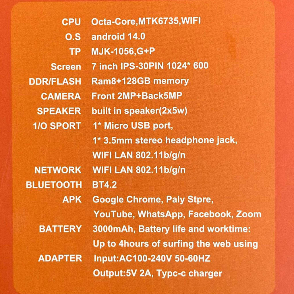 Примечание: 7inch, HD, Android 14, 8Gb, 256Gb, WiFi, Bluetooth