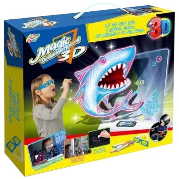 Доска для рисования подсветки, 7 трафаретов, 4 маркера, 3D очки, в коробке, Yimatoys