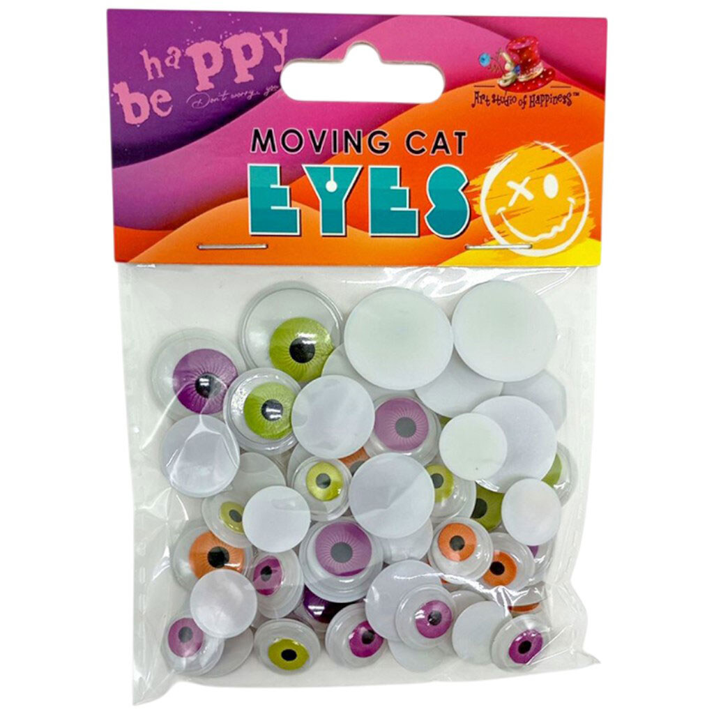 Движущиеся кошачьи глаза, 60шт., 20ммx4шт, 18ммx6шт, 15ммx20шт, 12ммx30шт. цветные, Art Studio Of Happiness