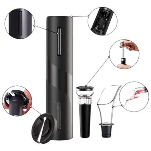 Примечание: штопор электрический для вина 4в1, нож для фольги, пробка, аэратор