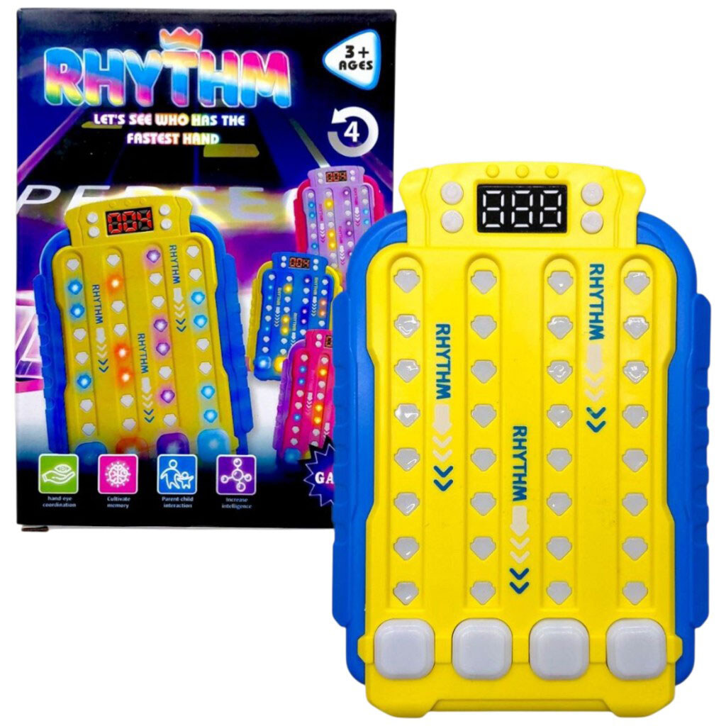 Примечание: Упаковка: Коробка | Тип эл-тов питания: AAA | Кол-во эл-тов питания: 3 | Эл-ты питания в комплекте: Нет | Вес в упаковке: 157 г | Габариты в упаковке: 11.5 x 3.7 x 16 см | Страна производитель: Китай | Комплектация: Электронная игра «Ритм», Инструкция