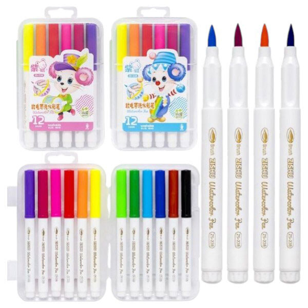 Фломастер-кисточка "Water color pen", 12 цветов, в пластиковом боксе, Mic