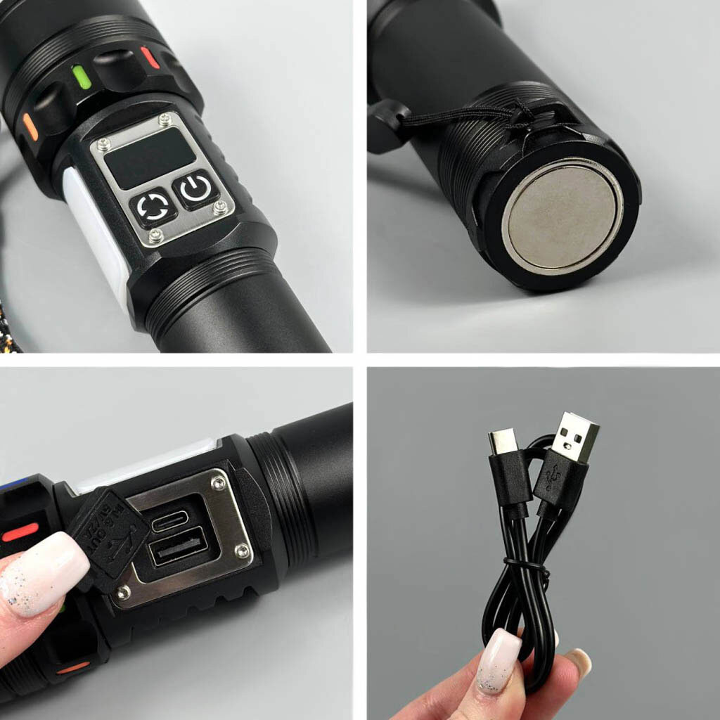 Примечание: White, Red light, TG+COB, Li-Ion аккумулятор, Power bank, Magnetic, Zoom, Type-C