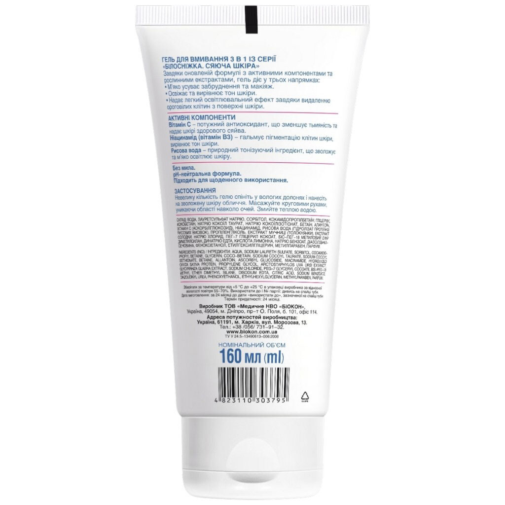 Гель для умывания кожи лица 3в1 Биокон "Белоснежка Сияющая", 160 мл