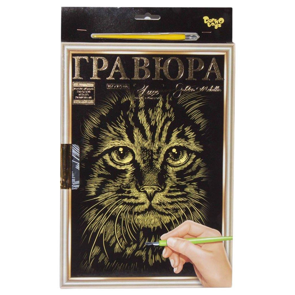 Гравюра "LUXE А4", с рамкой "Golden Metallic: Кот", Dankotoys