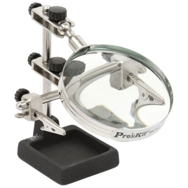 Примечание: Полезное приспособление для паяльных работ в сфере электроники и моделирования. Зажимы-держатели поворачиваются в разные стороны. Линза диаметром 3.5(90 мм) обеспечивает 2-кратное увеличение. Устойчивый штатив