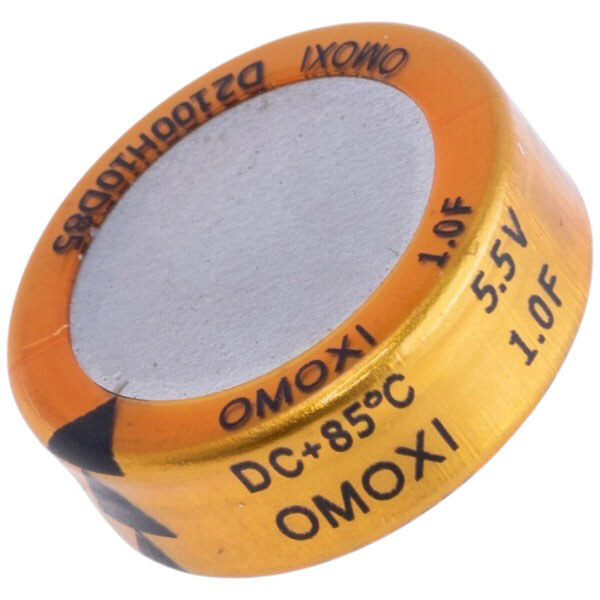 Примечание: Производитель: OMOXI | Емкость: 1 F | Роб.напряжение: 5,5 V | Габариты,межд.расстояние: D=21,5; L=7,5 мм | Описание: Ионистор. Горизонтальная установка, шаг контактов: 5мм, отклонение емкости -20%/+ 80%, ESR 30 Ohm, температурный диапазон -25...85 °C, срок службы 1000 часов