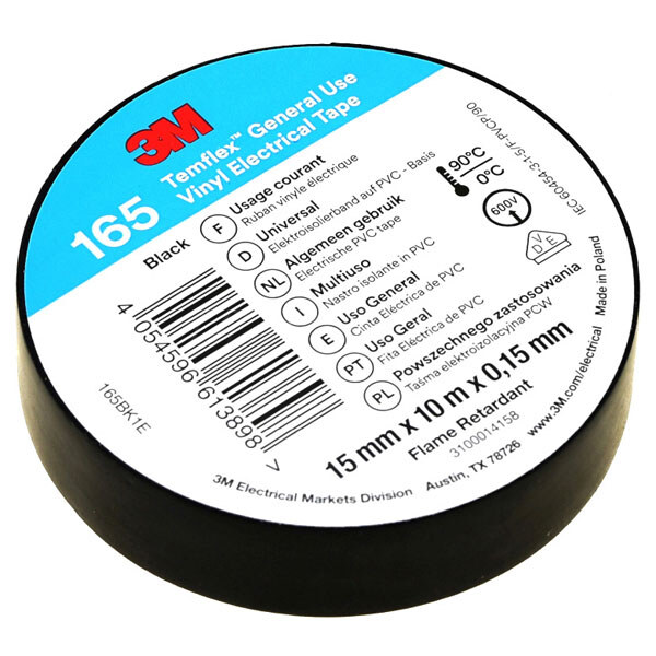 Изолента 3М 165 TEMFLEX 15мм/10м, черная, 10.0 м., 15 мм., Черный