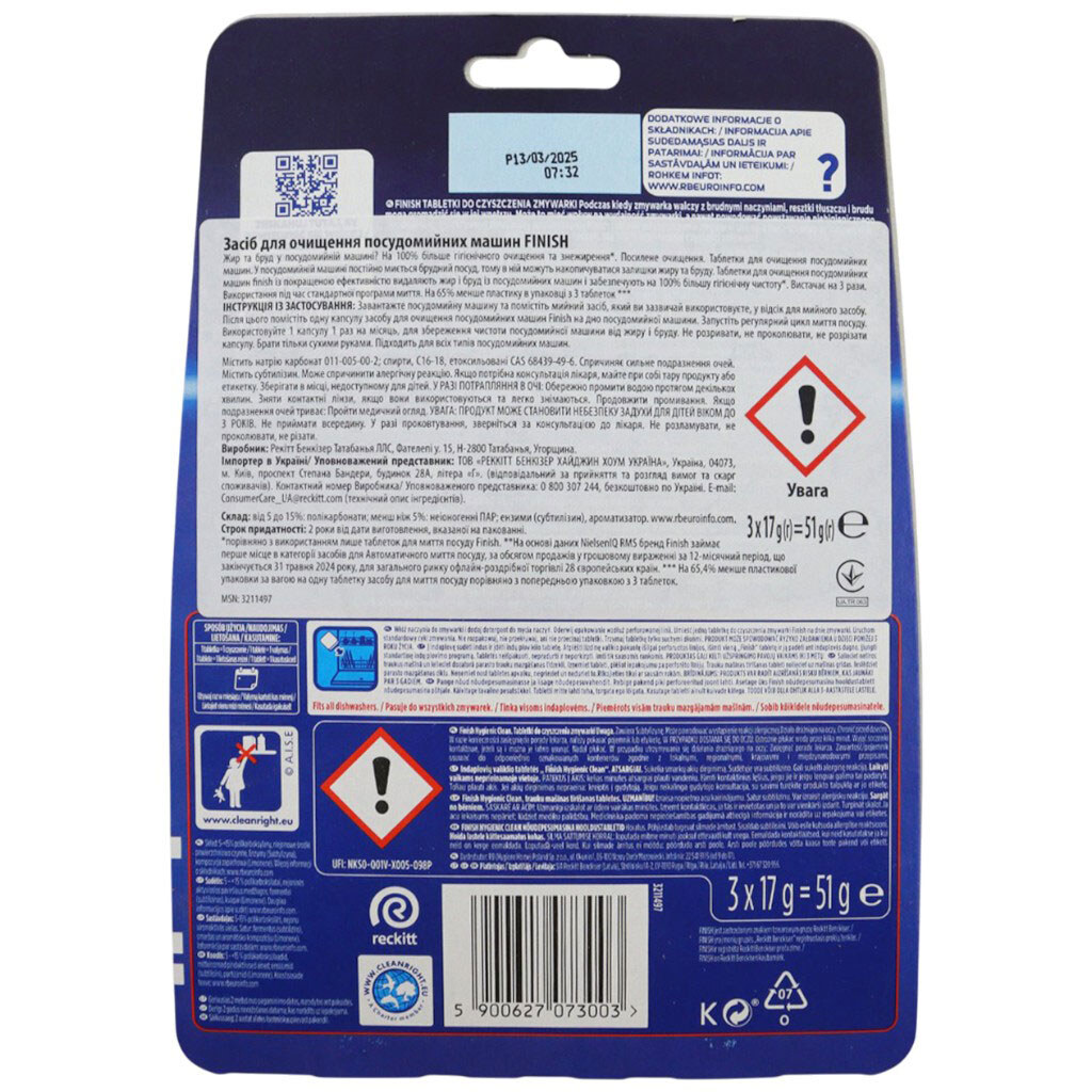 Капсулы для очистки посудомоечных машин FINISH, 3 штуки