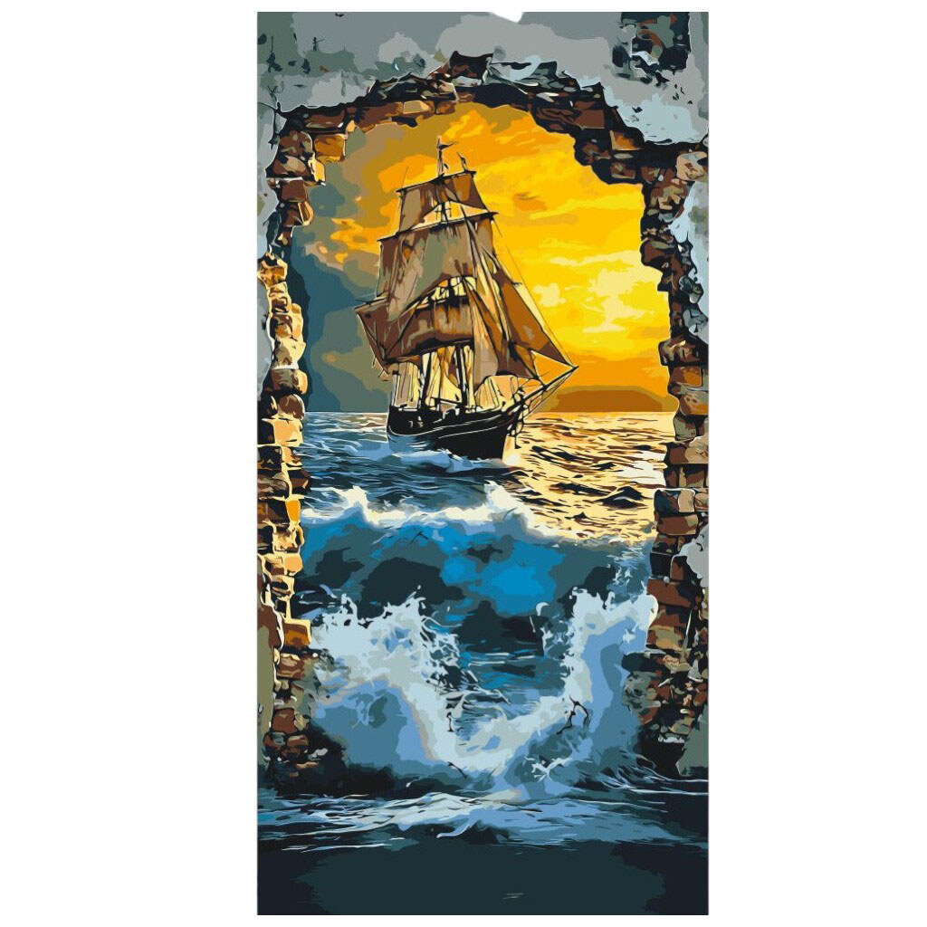 Картина по номерам "КОРАБЛЬ В МОРЕ", 40x80 СМ, Origami