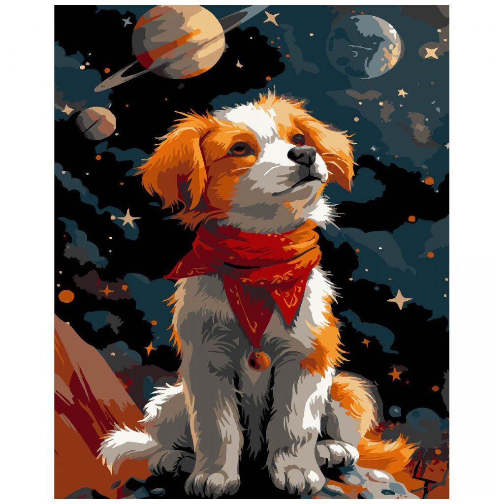 Картина по номерам на черном фоне "Космическая собака", 40х50 см, Strateg