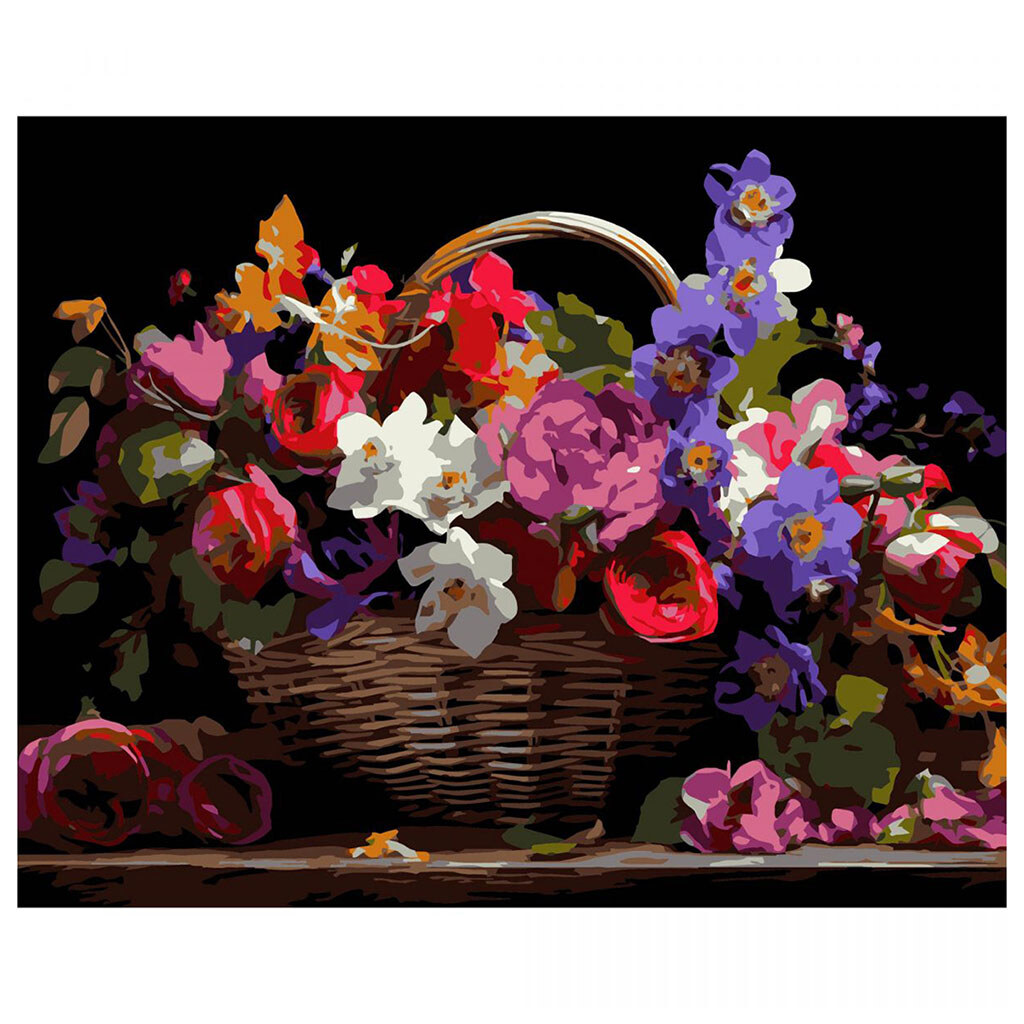 Картина по номерам на черном фоне "Корзина разноцветных цветов", 40х50 см, Strateg