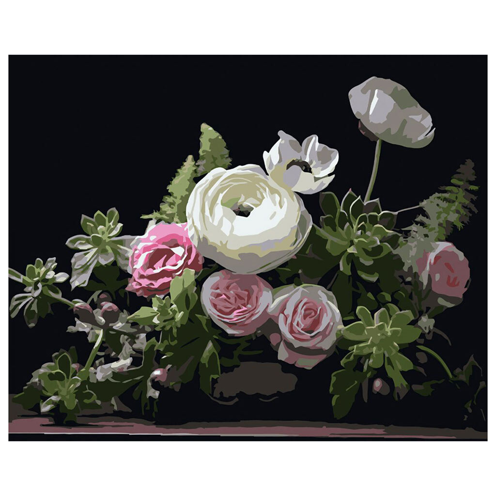 Картина по номерам на черном фоне "Нежный цветочный натюрморт", 40 x 50 см, Strateg