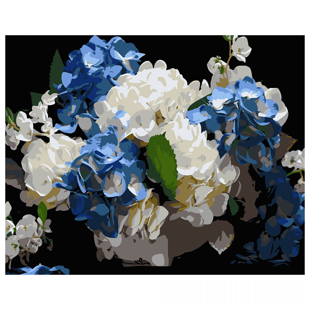 Картина по номерам на черном фоне "Голубо-белые гортензии", 40х50 см, Strateg