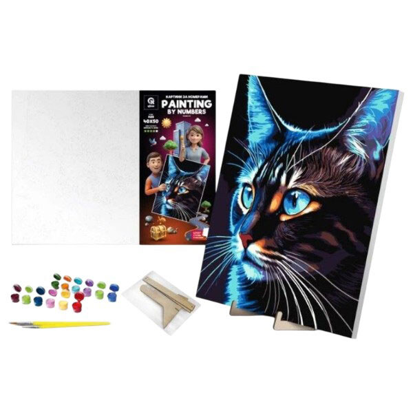 Картина по номерам с красками металлик "Космо-кот", с деревянной подставкой, 40х50 см, Qbee