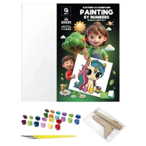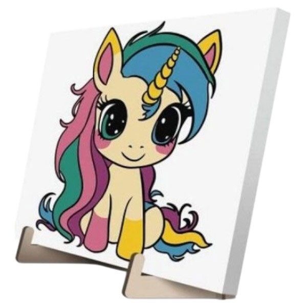 Картина по номерам с красками металлик "Радужная Единорожка", 25х25 см, с деревянной подставкой, Qbee