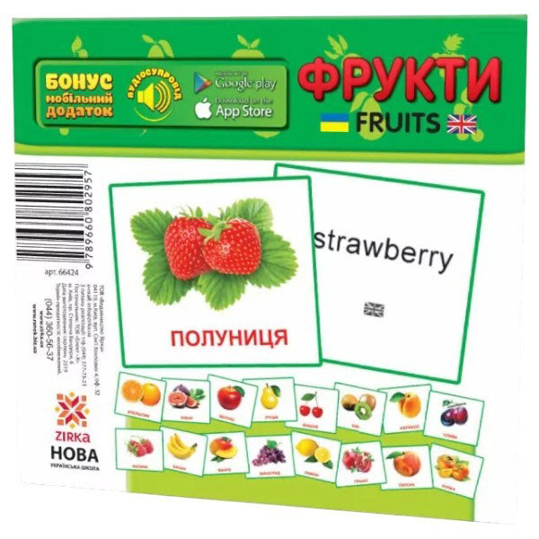 Карточки мини "Фрукти", 17 карточек, 11х11, укр, Зірка
