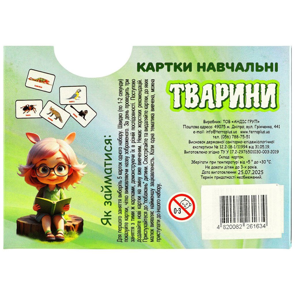 Карточки учебные детские "Животные", 32 шт/уп, TerraPlus
