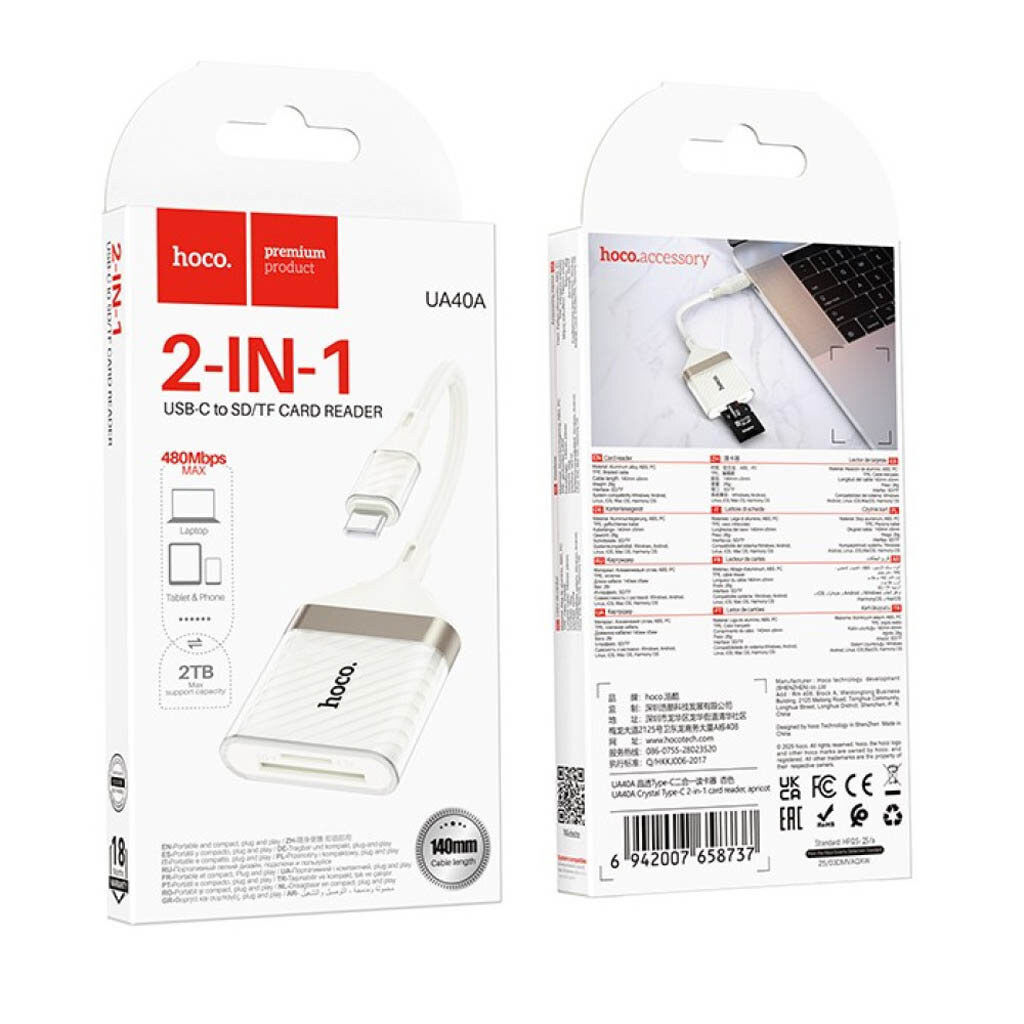 Картридер Hoco UA40A Crystal, Type-C, Бежевый