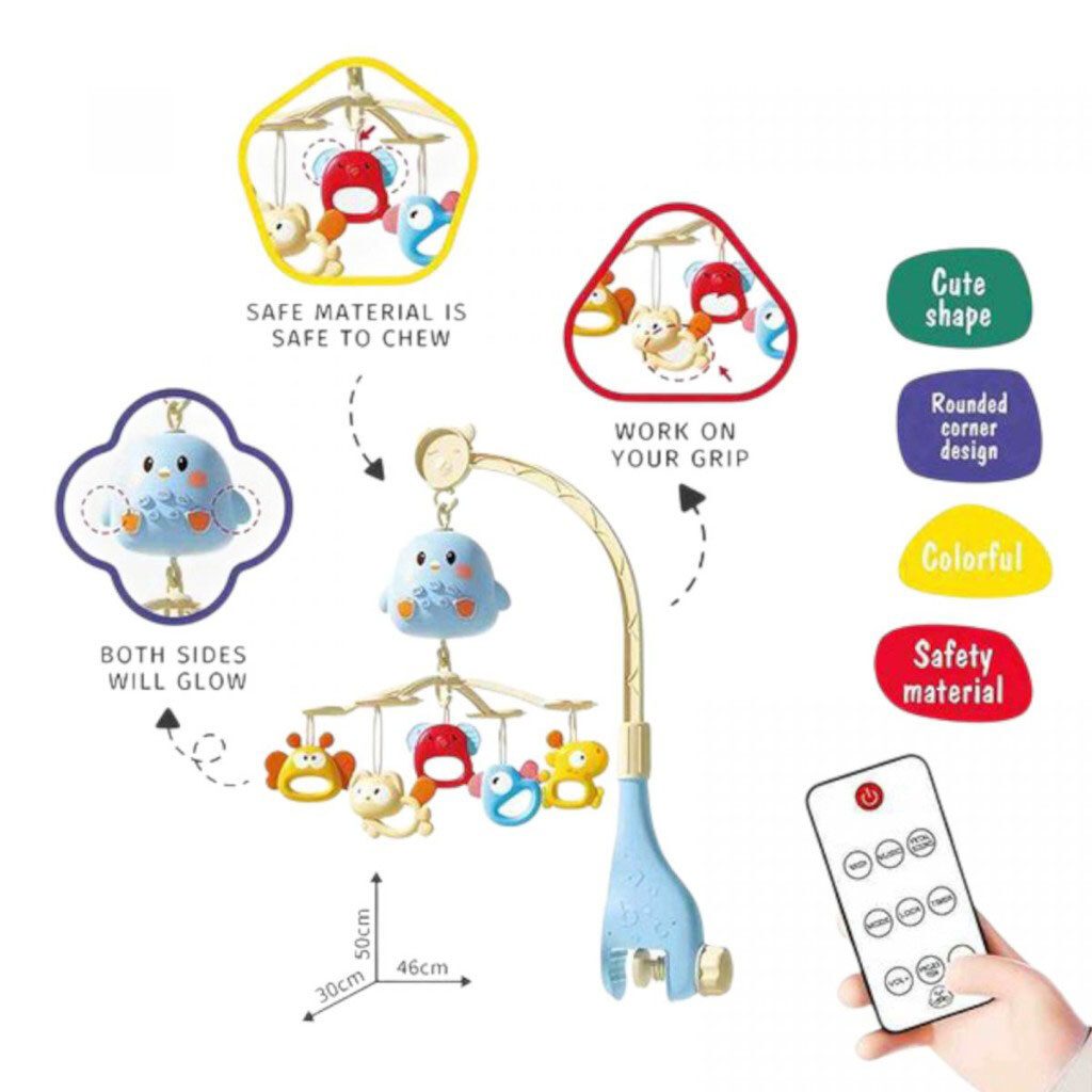 Карусель: мелодии, световая проекция, фигурки животных, погремушка, в коробке, микс цветов, Huanger