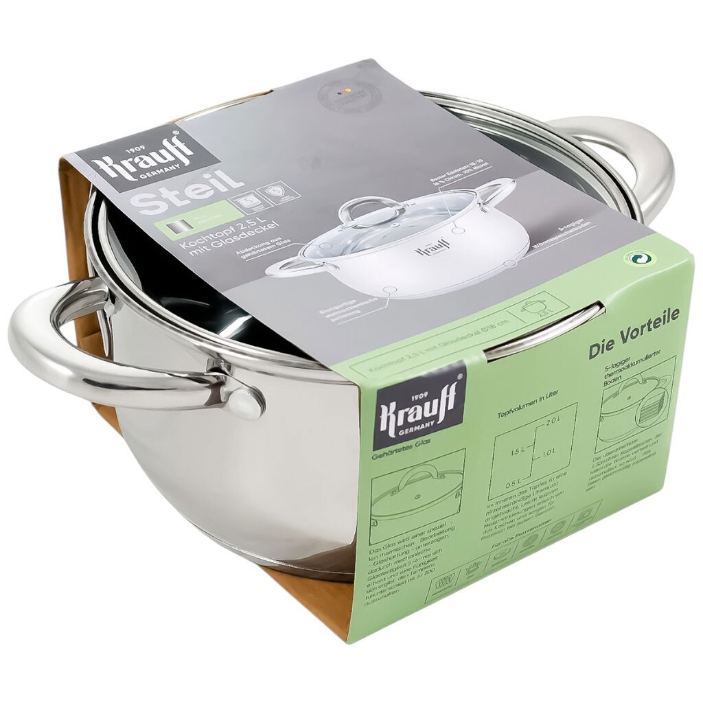 Кастрюля нержавеющая сталь со стеклянной крышкой Krauff Steil d=18 см 2,5 л