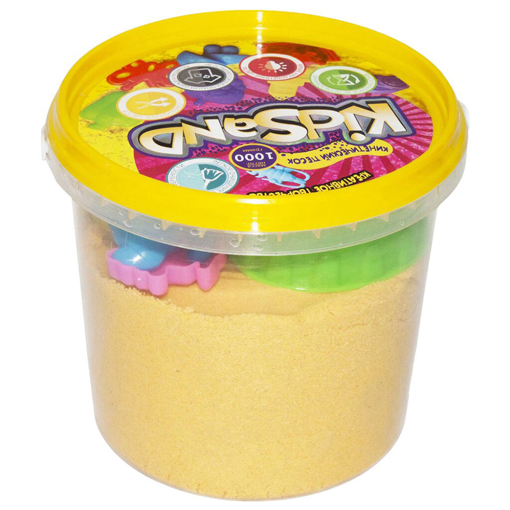 Кинетический песок "KidSand", 1000 г, представляет собой инновационный материал для творчества и игр. Этот песок легко принимает любую форму и быстро рассыпается при необходимости, сочетая в себе пористую структуру и высокую прочность. На ощупь он напоминает влажный морской песок, но при этом не содержит воды, не липнет к рукам и не оставляет следов на одежде. В набор также входят 8 разнообразных формочек и подробная инструкция по использованию.