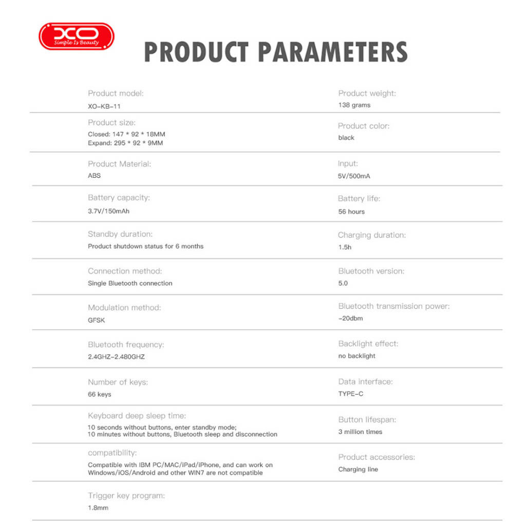 Примечание: беспроводная, складная, 66 клавиш, Bluetooth 3.7V, 150mAh, с Eng раскладкой